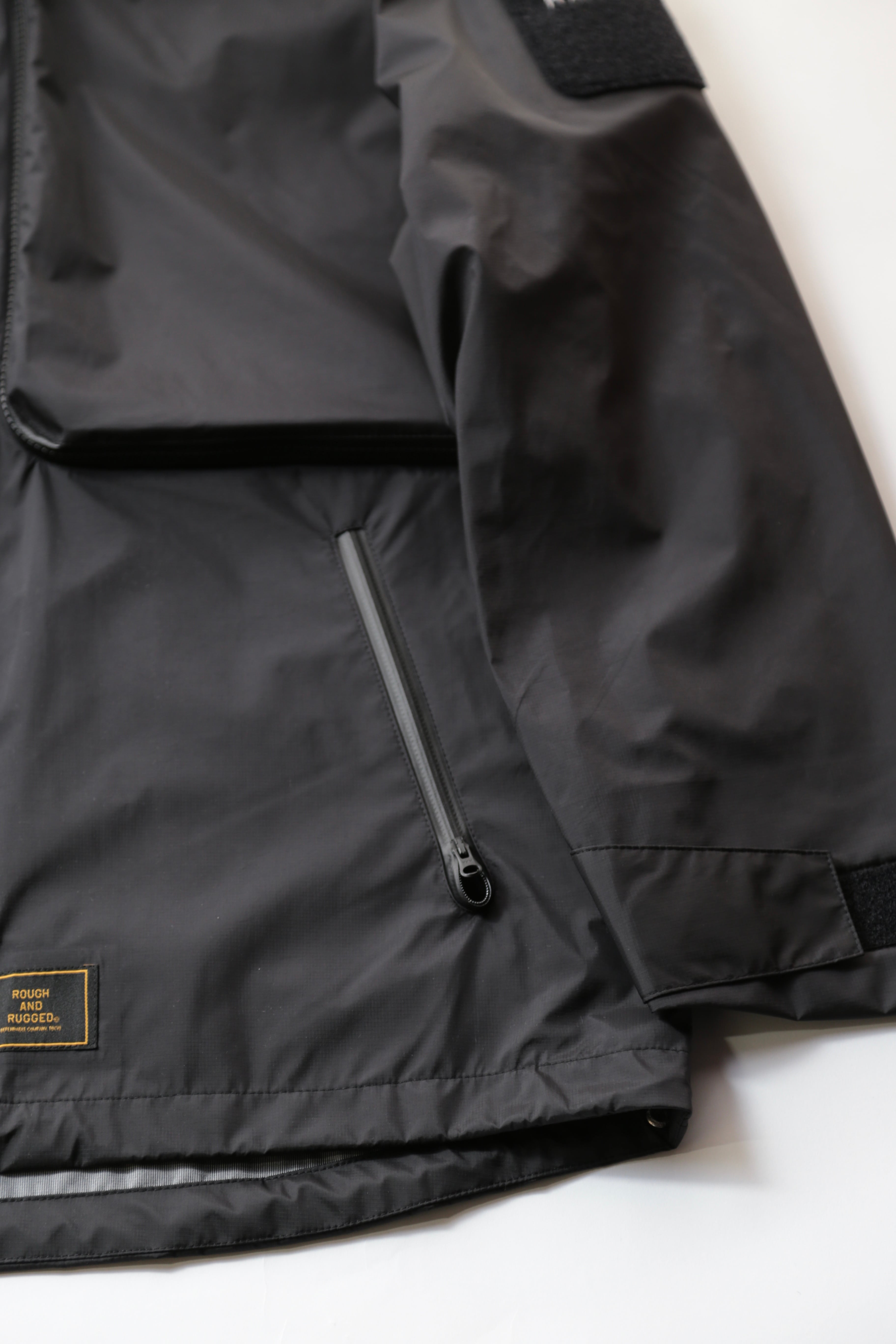 透湿防水機能を施した特殊ナイロンリップ素材をアウトシェルに裏面縫製箇所全てに